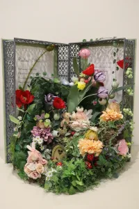 アクセントに、額をいれました。こちたは、リーフで張り合わせ、また小さな子どもたちもたのしめるように、テントウムシなどの昆虫も葉の後ろに隠したり、ベルちゃん達が皆さまをお出迎えしています。